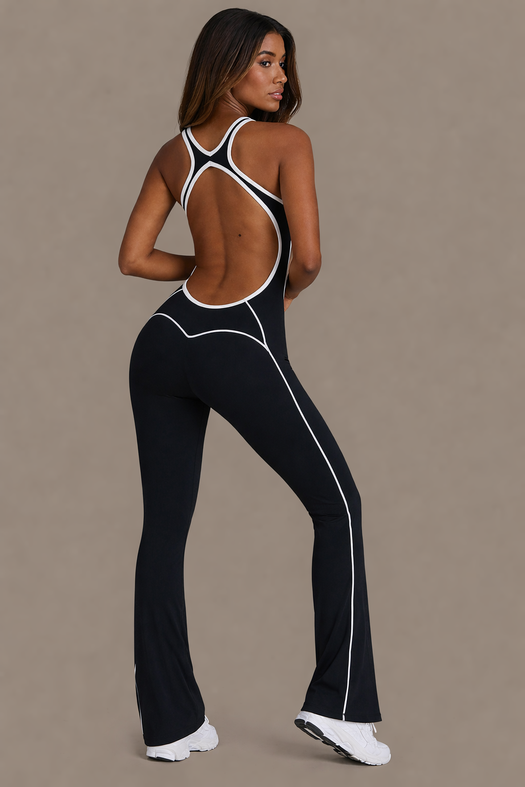 The Kairo Jumpsuit contours your body with precision seams and a bold open-back design, finished with a flattering flared leg. Built for movement, made to stand out.