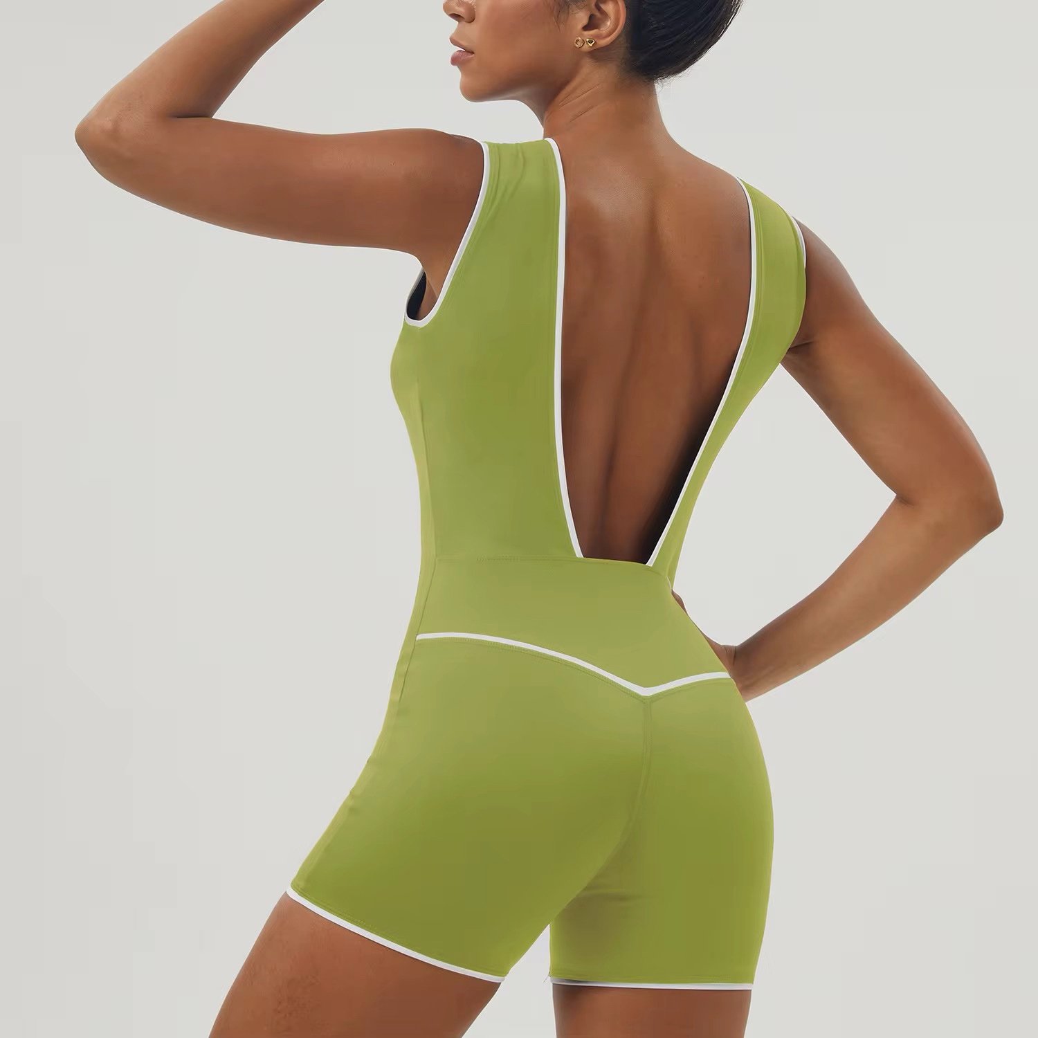 The Sorelle Playsuit is designed to contour the body with precision, featuring a striking open-back silhouette and subtle seam detailing that enhances your natural curves.