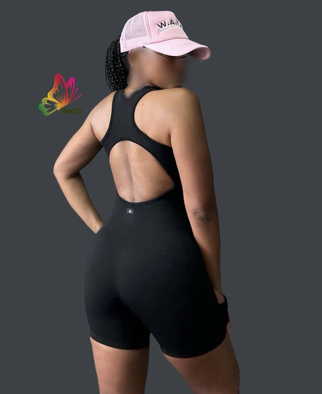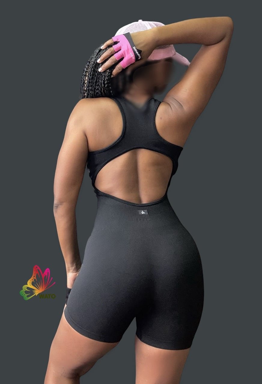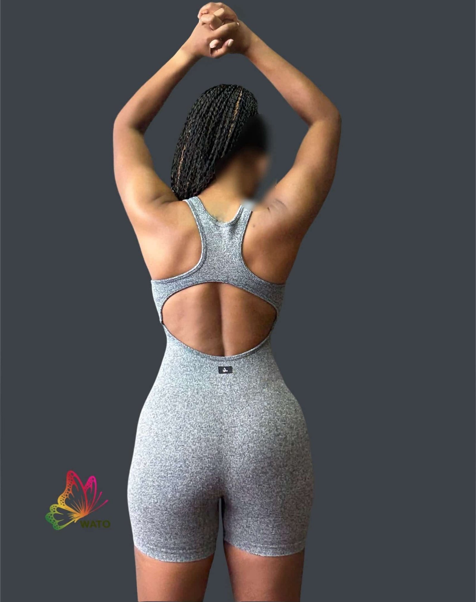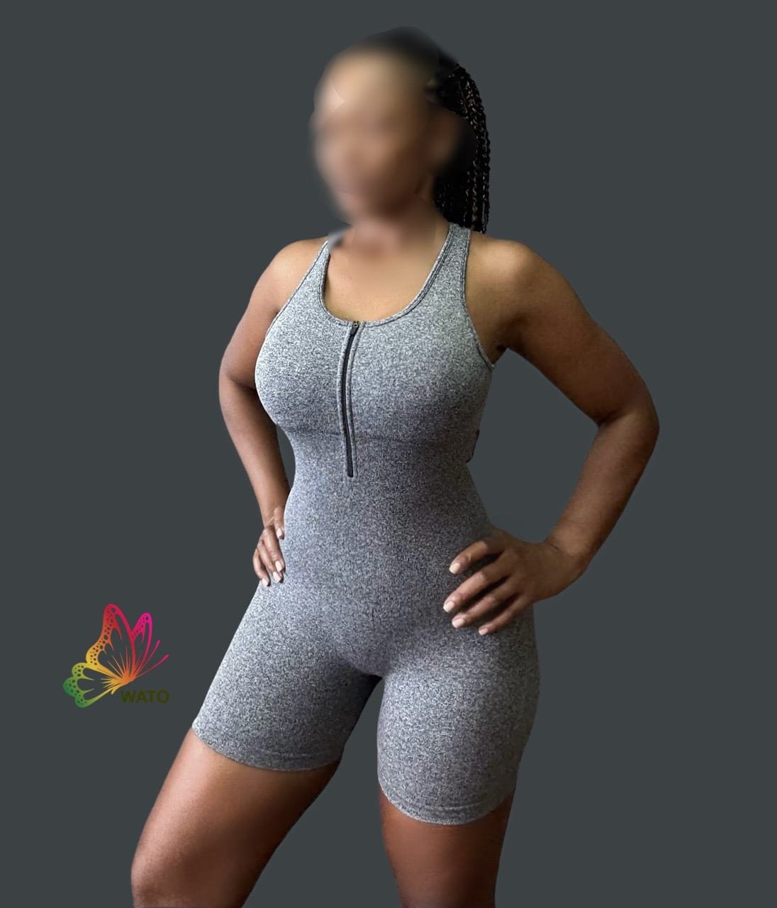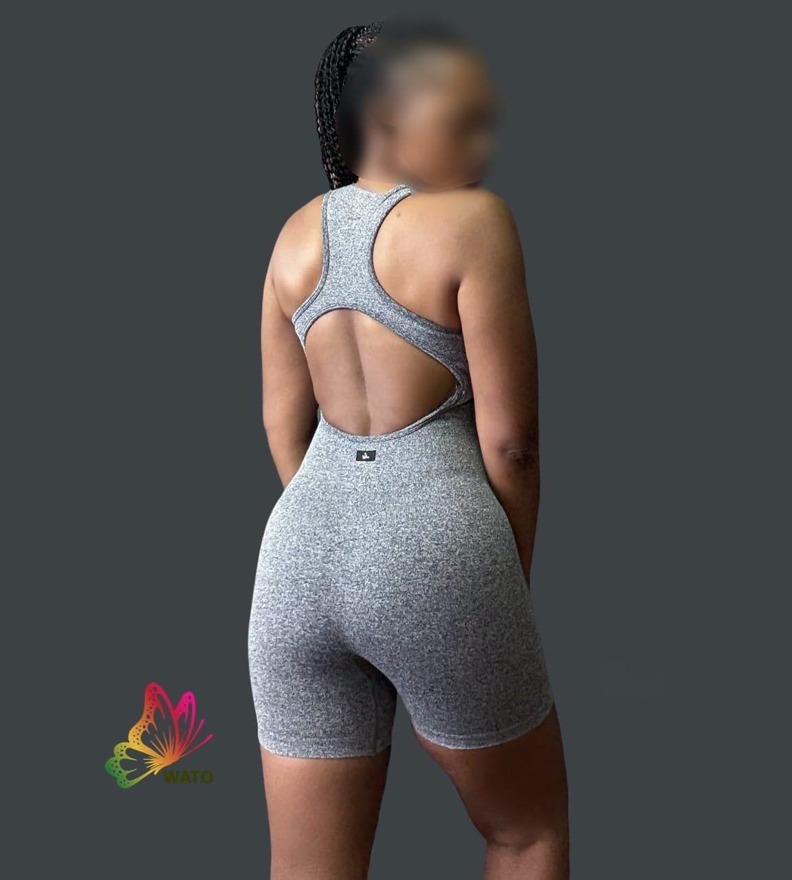 Playsuit, bodysuit with 3/4 zipper open back, heather stretch seamless fabric.