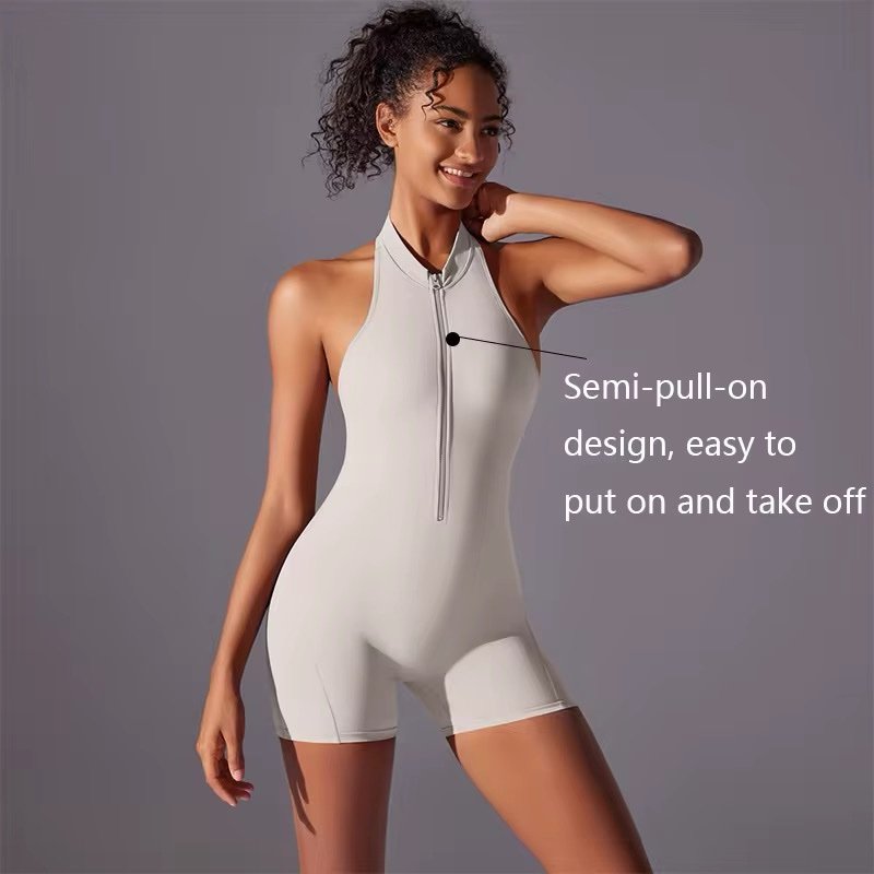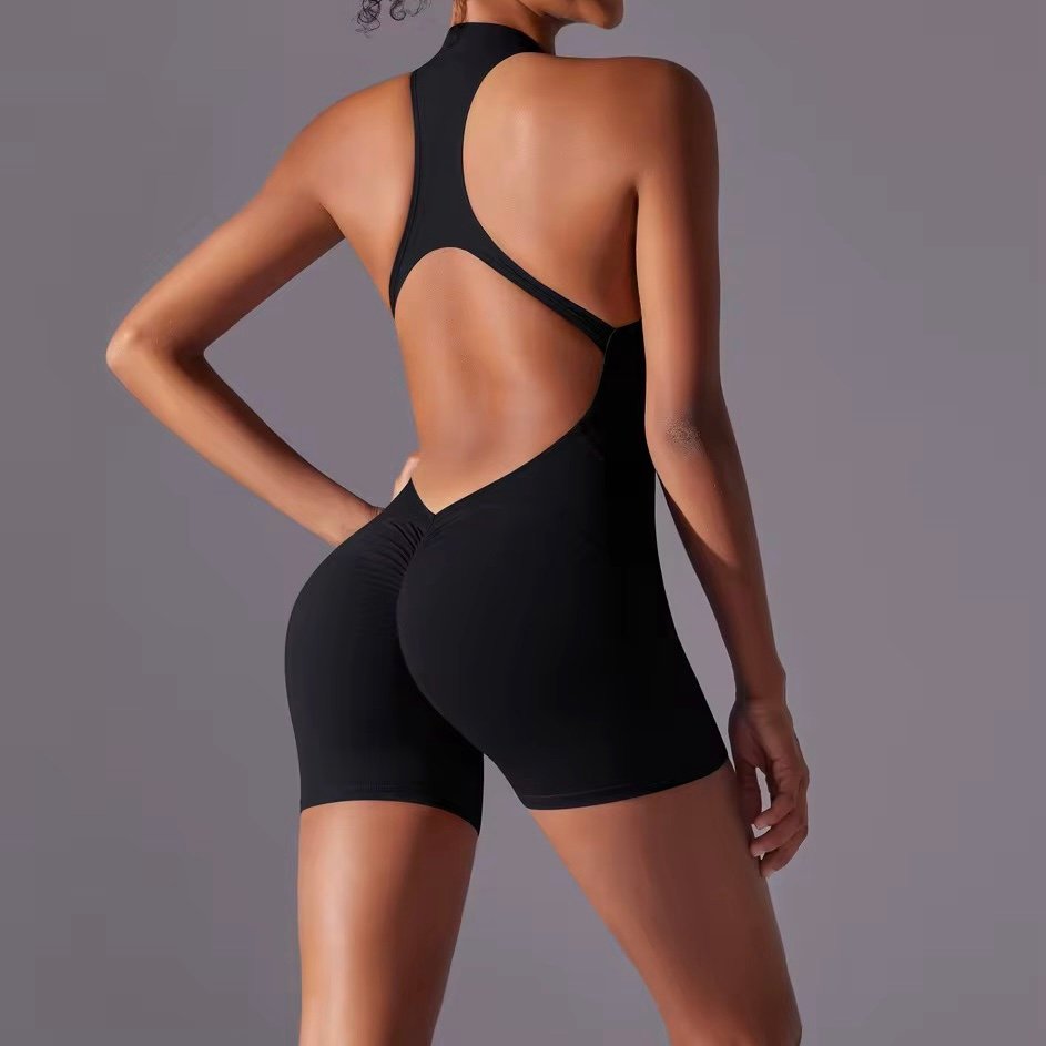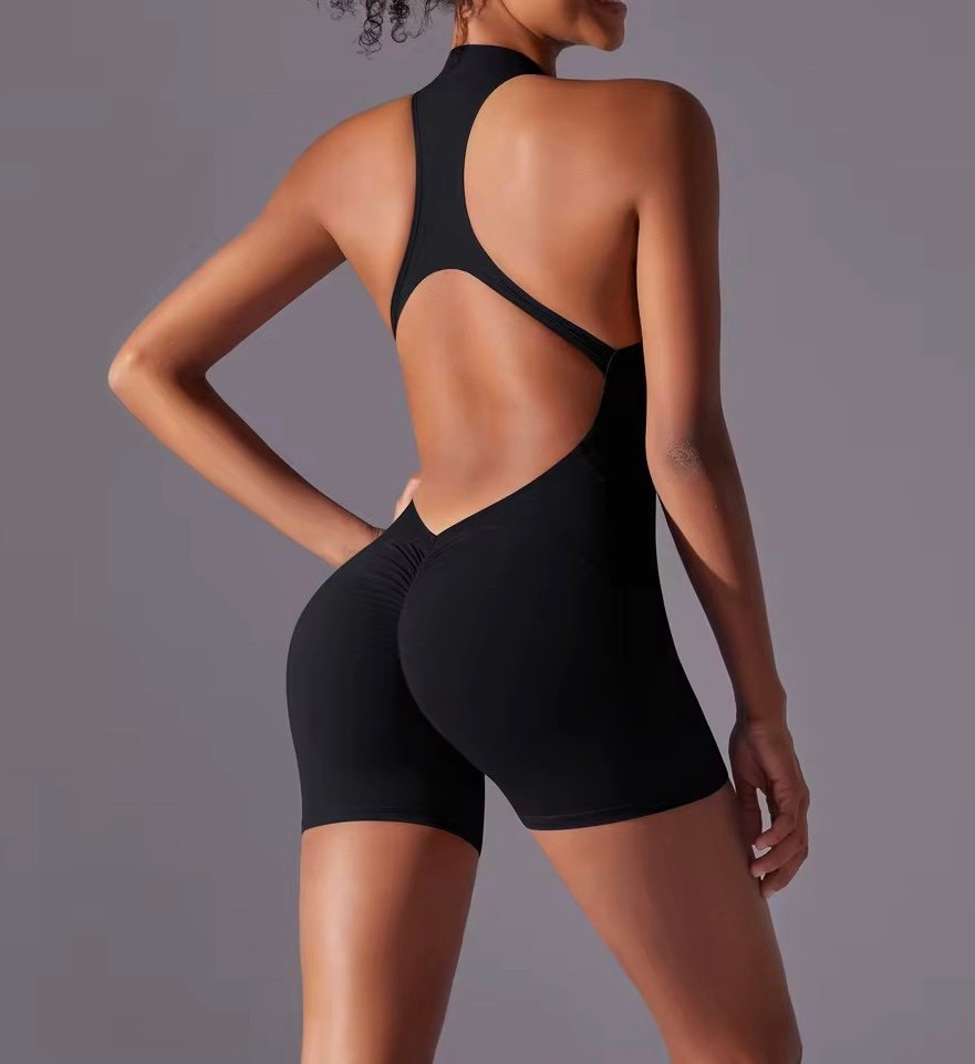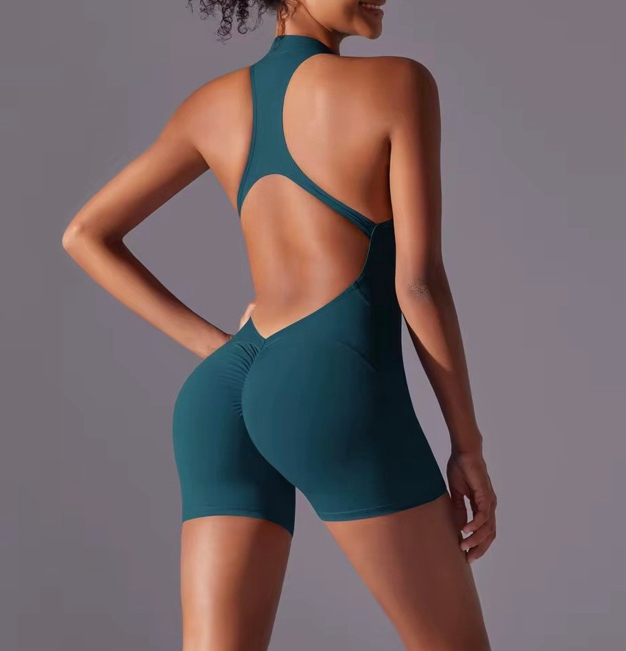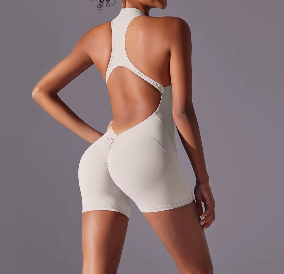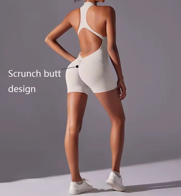 The Moya Halo Shorts Romper is your go-to piece for showing strength, style, and curves in one seamless fit. Featuring a racer halter neckline, open sculpted back, and scrunch detail, this design hugs your body in all the right places while giving maximum flexibility and breathability.