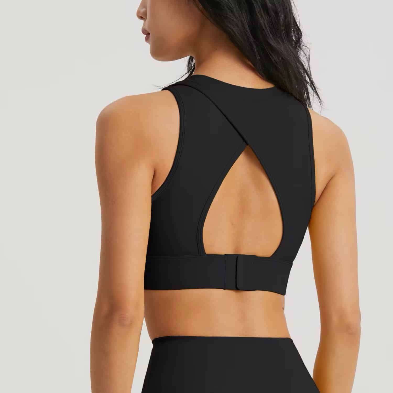 designed for comfort, confidence, and control. Featuring a secure back clasp, buttery-soft stretch fabric, and a cut-out back that defines your strength and style. Perfect for gym or street.