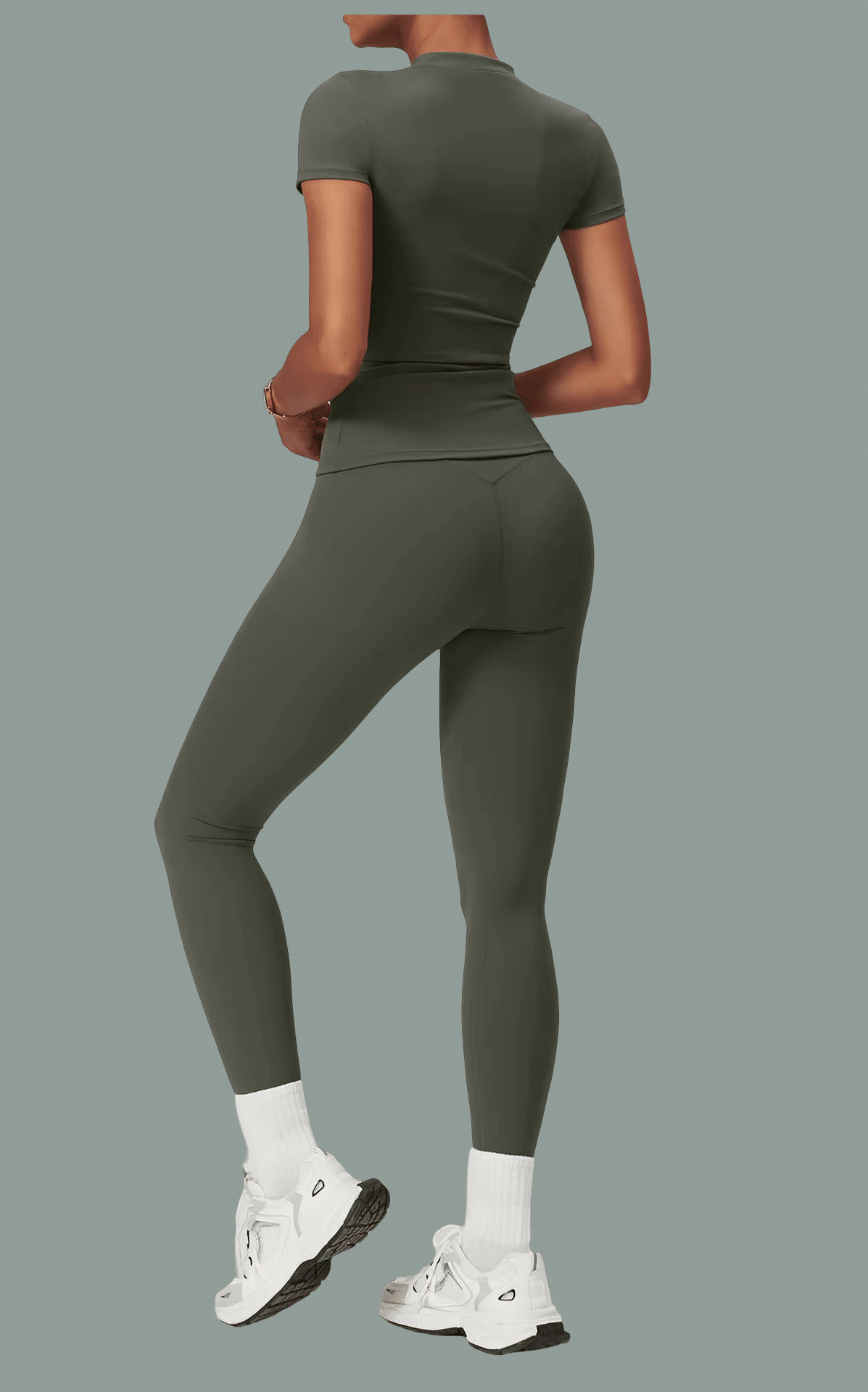 Our Sculpt Tee Set is the perfect fusion of performance and poise. Crafted from ultra-smooth, breathable fabric that shapes and supports, this short-sleeve top and high-waist legging duo delivers a sleek, contoured fit that transitions effortlessly from workout to lifestyle.