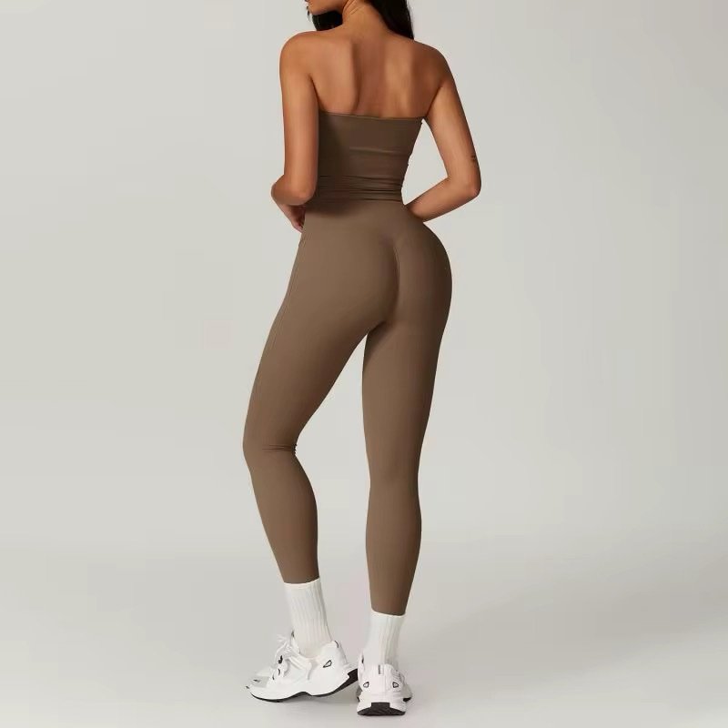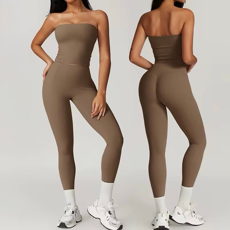 This two-piece features a strapless tube top paired with high-waisted scrunch leggings, designed to hug your body while enhancing your curves. Made with buttery-soft, stretchy fabric that moves with you, it offers a smooth, sculpted fit whether you’re in the gym or on the go.