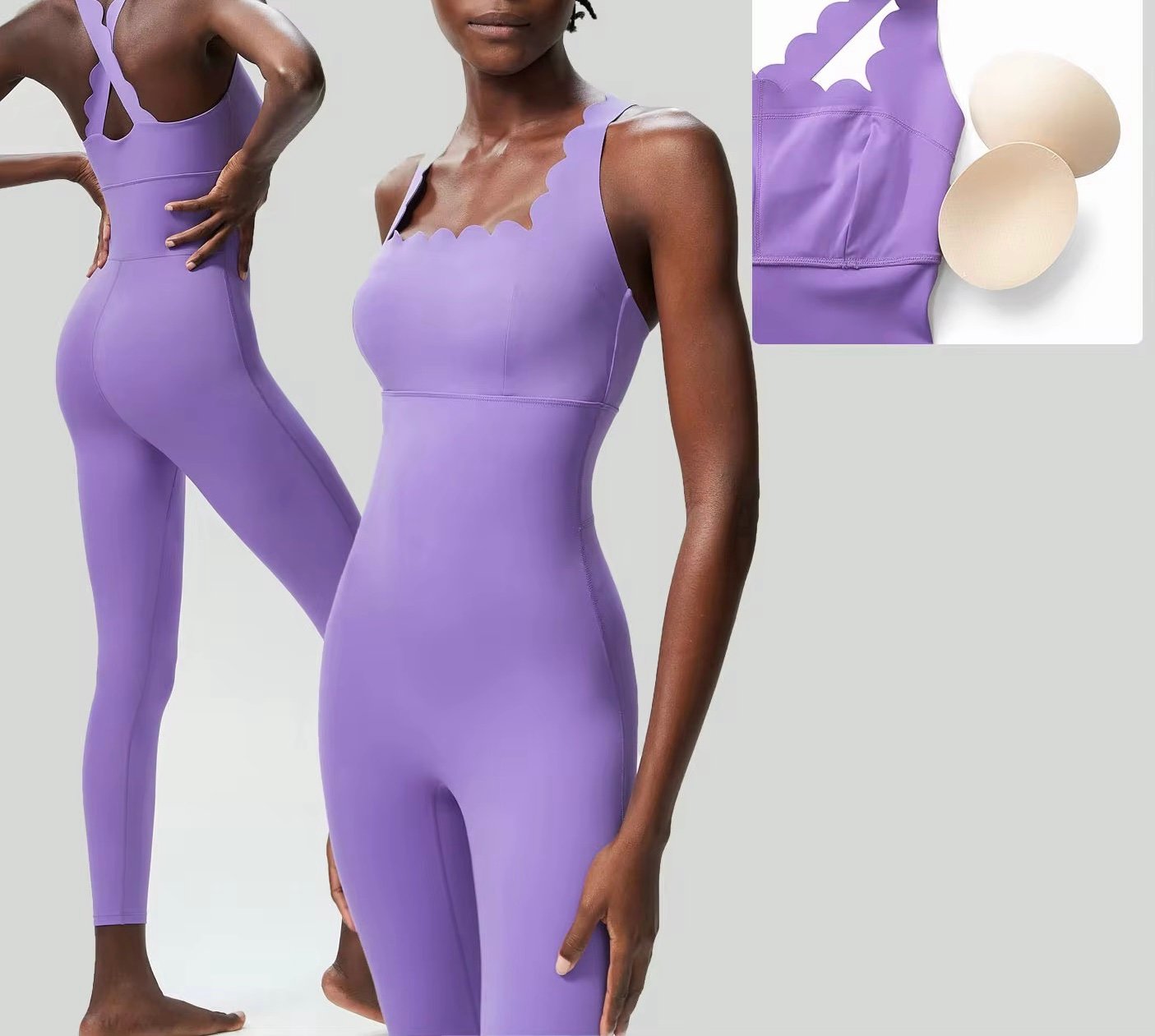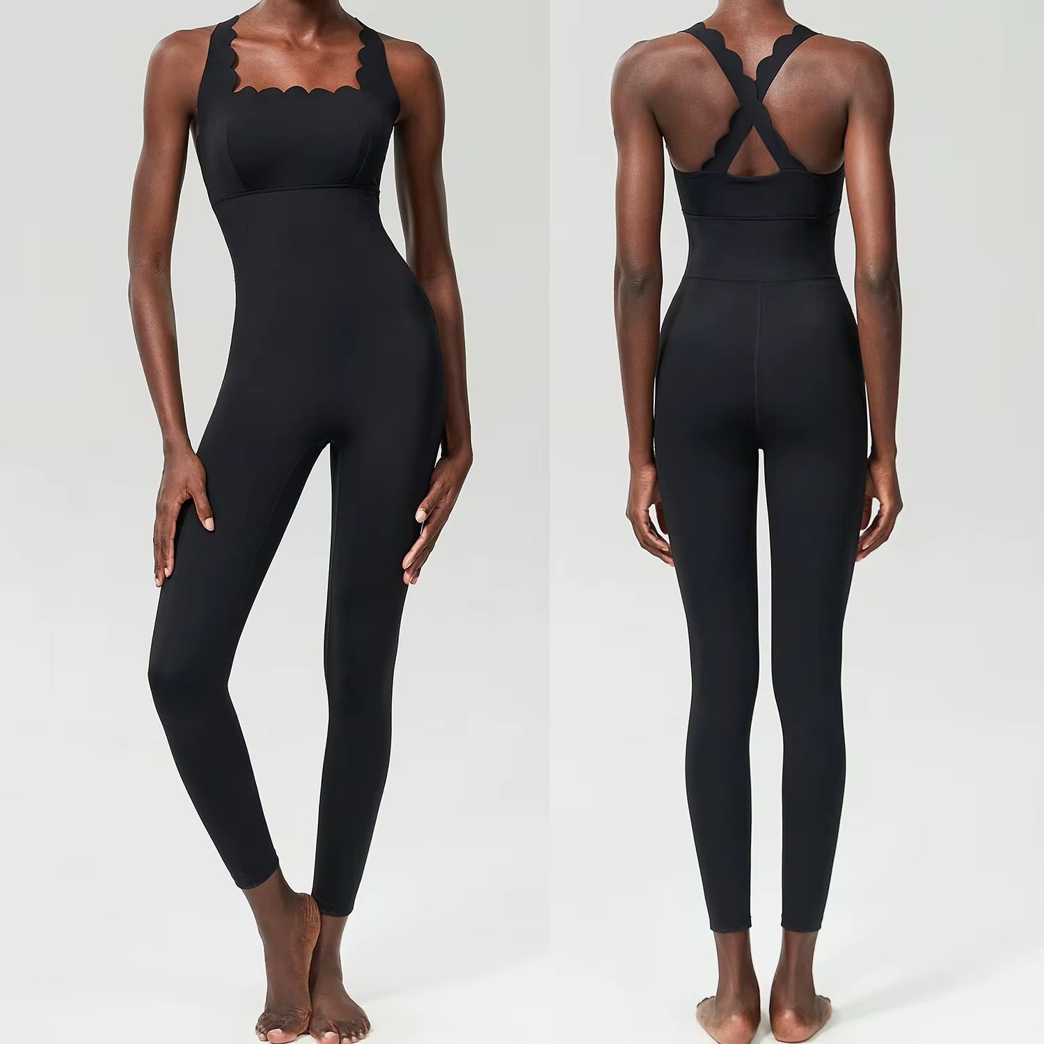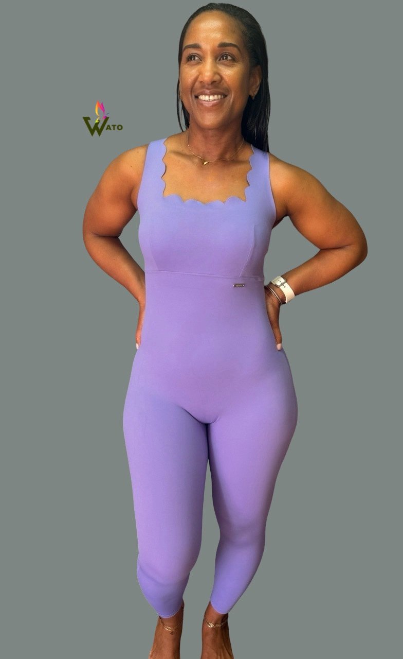 Grace meets strength in the Tessa Sculpt Jumpsuit — a beautifully designed one-piece that blends femininity with performance. The standout scalloped neckline and cross-back detail bring a soft, elegant edge to your workout look, while the sculpting fabric moves seamlessly with your body. Whether it’s yoga, Pilates, or brunch after your workout, this piece delivers unmatched comfort and style.