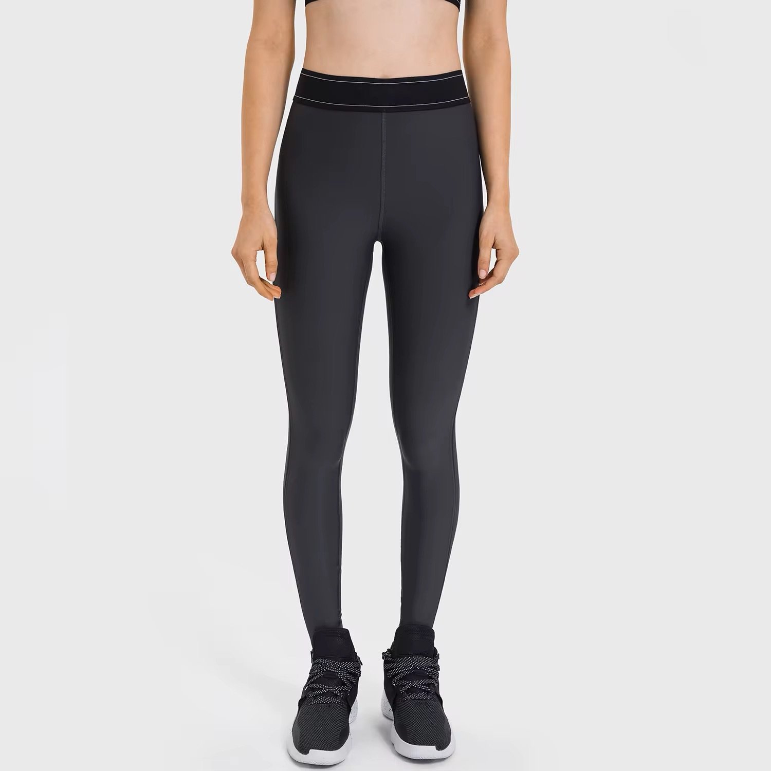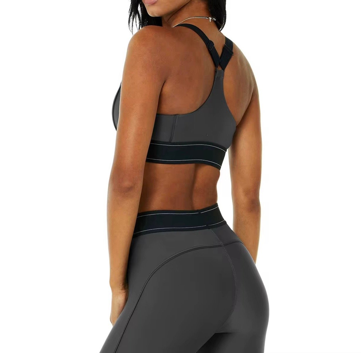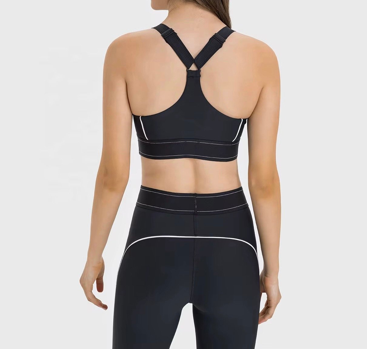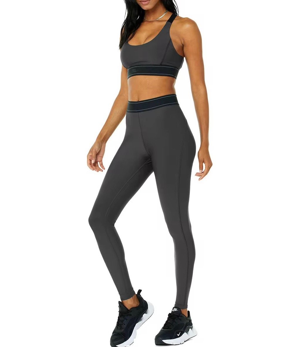 The ultra-smooth fabric hugs the body like a second skin, while the contrast band detailing adds a modern, athletic edge. Whether you’re hitting the gym, on a run, or styling it for casual wear, this set blends confidence and comfort seamlessly.